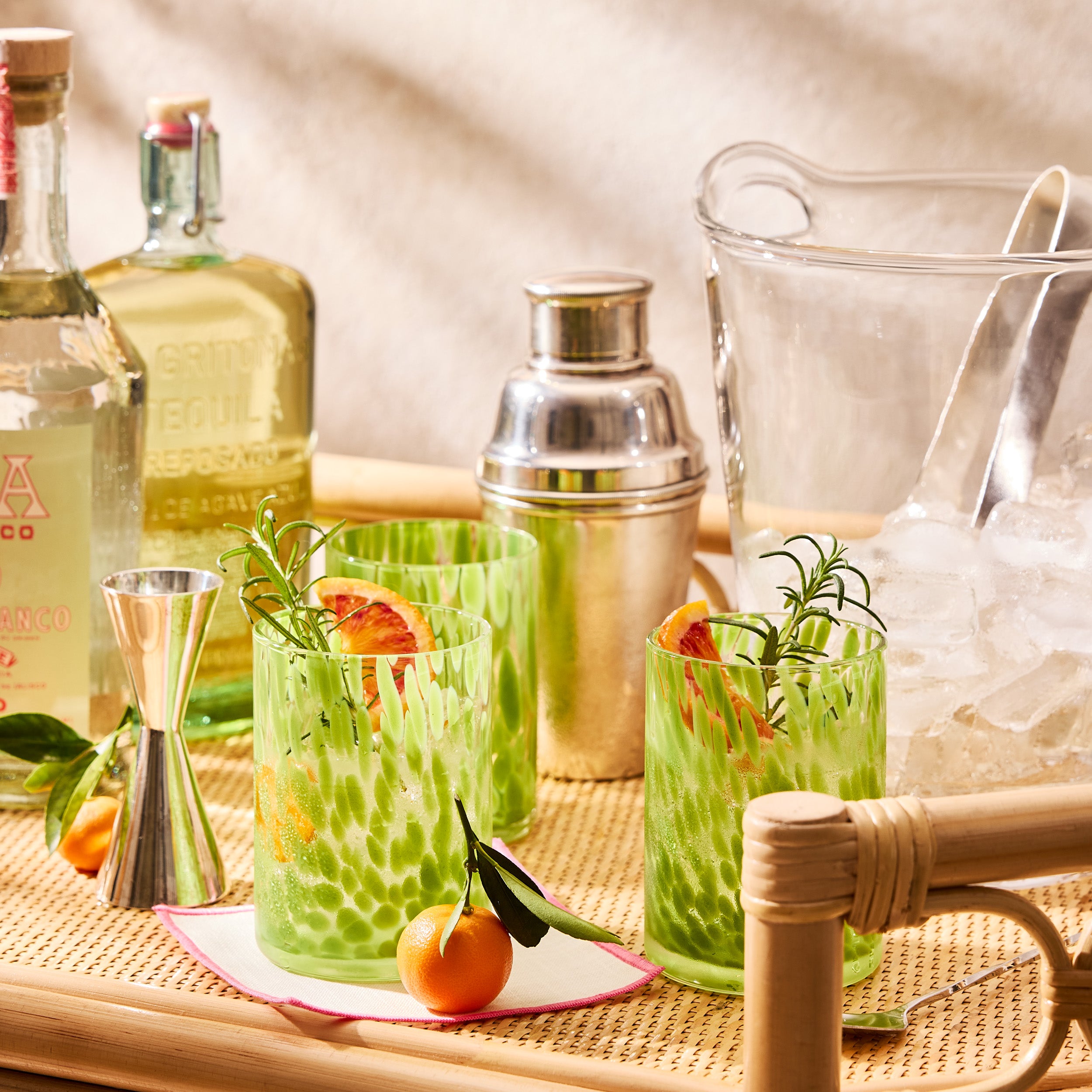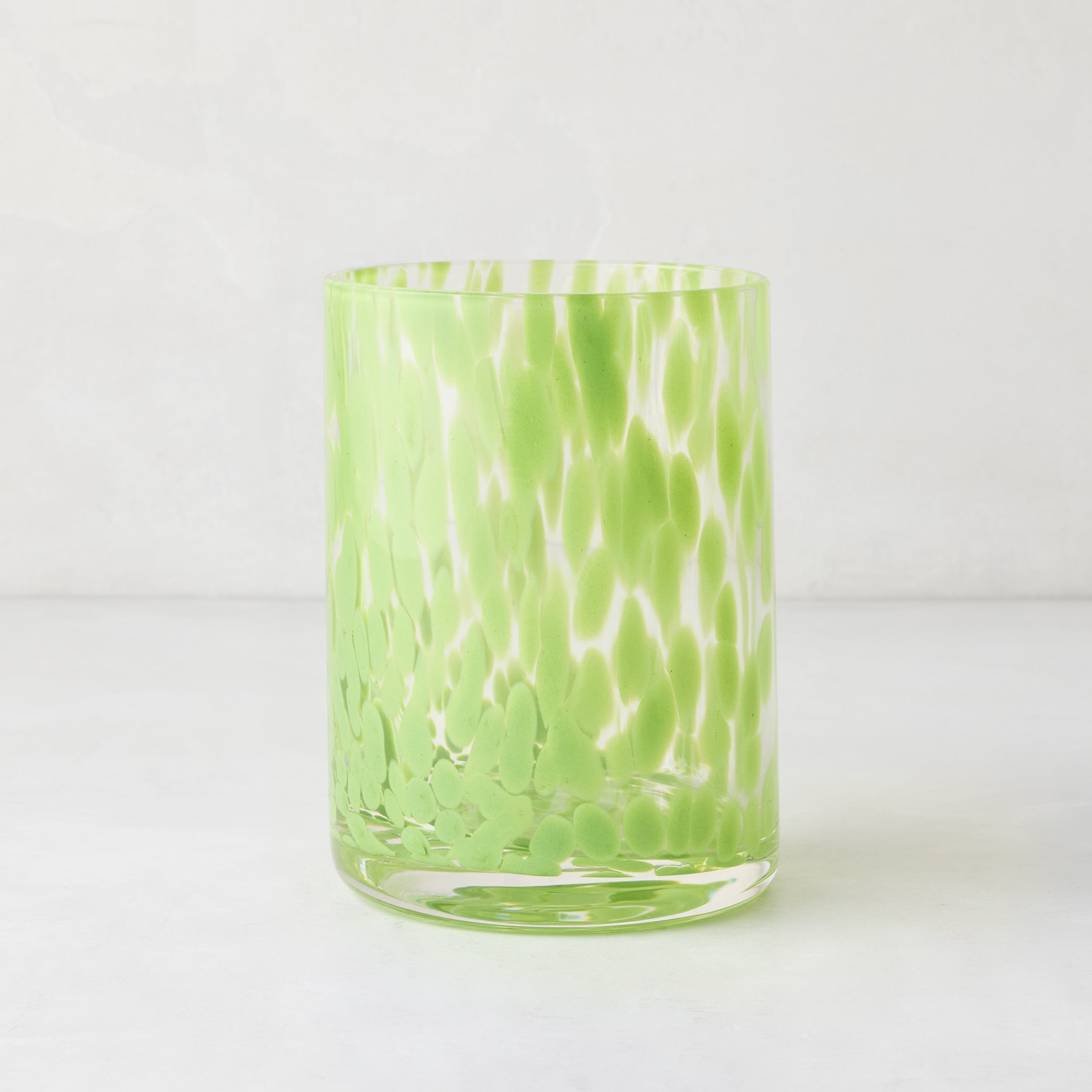 Make every day more exciting with the colorful Spotted Double Old Fashioned Glass in Green. The bright green spots overlay a clear glass to make an effortlessly fun look that will brighten up any table. Use these glass to match, or contrast, your color scheme and make every meal better.
