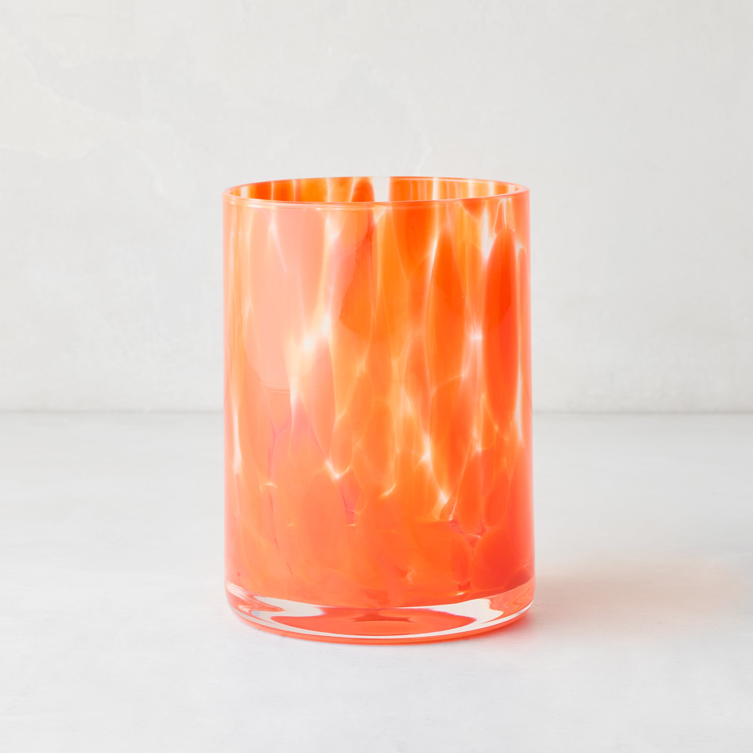 Make every day more exciting with the colorful Spotted Double Old Fashioned Glass in Orange. The bright orange spots overlay a clear glass to make an effortlessly fun look that will brighten up any table. Use these glass to match, or contrast, your color scheme and make every meal better.