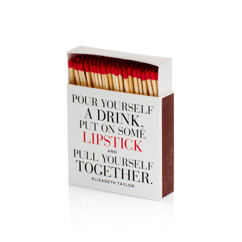 Exclusively Hudson Grace. Strike up a conversation with our oversized "Pour yourself a drink, put on some lipstick and pull yourself together" matches. The box design is created in-house and printed in England. Makes an ideal hostess gift or — when paired with one of our signature candles — can turn a petite present into a grand gesture.