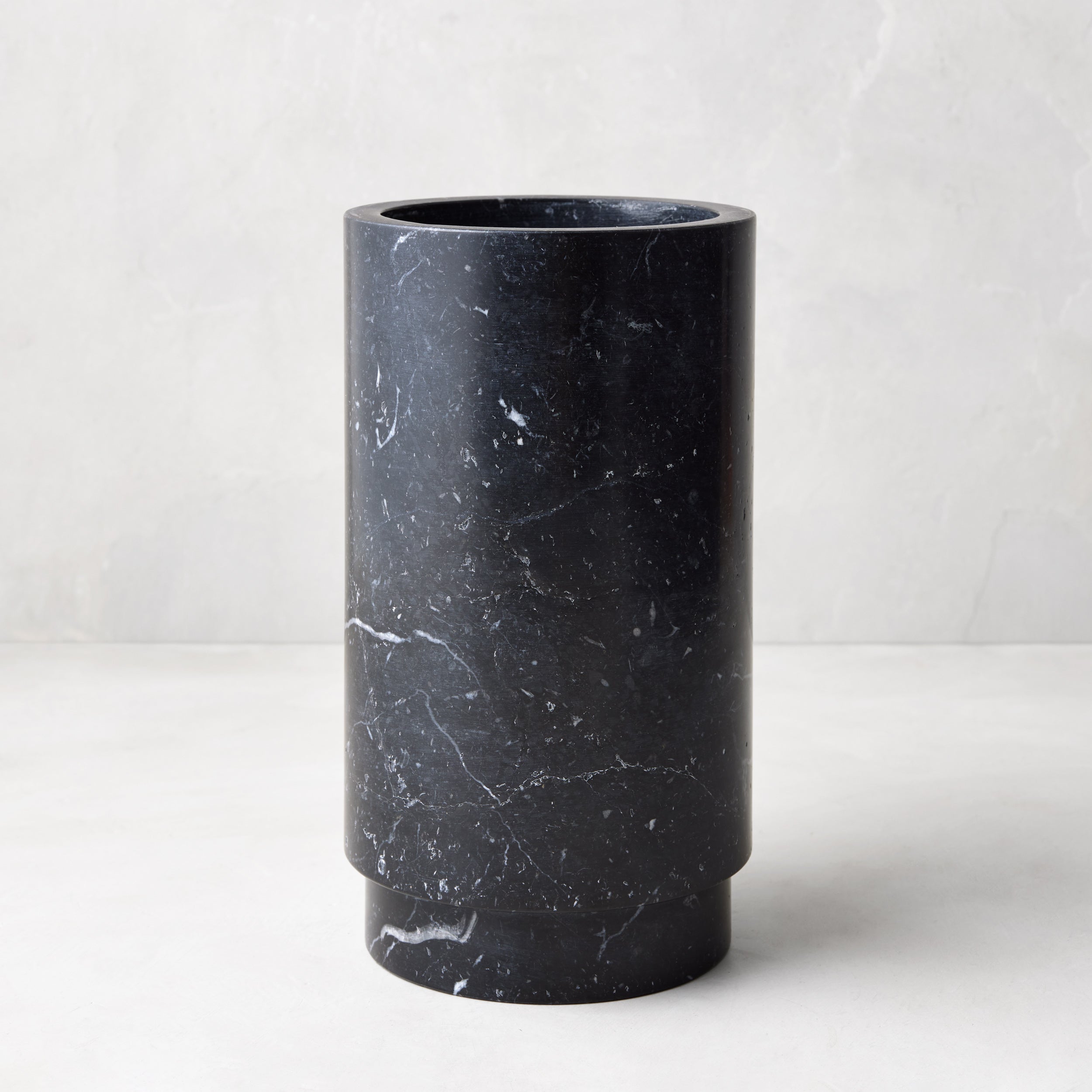 Hand-carved from natural black marble, this modern chiller showcases your favorite 750ml bottle while maintaining the ideal serving temperature. The dense stone naturally retains the cold, ensuring your bottle stays perfectly cool throughout the evening. Pair with our Diane Keaton x Hudson Grace Wine Opener and signature cocktail napkins for the perfect wine-lover gift. (Psst! When not in use, this chiller also serves as a holder for your favorite utensils.)