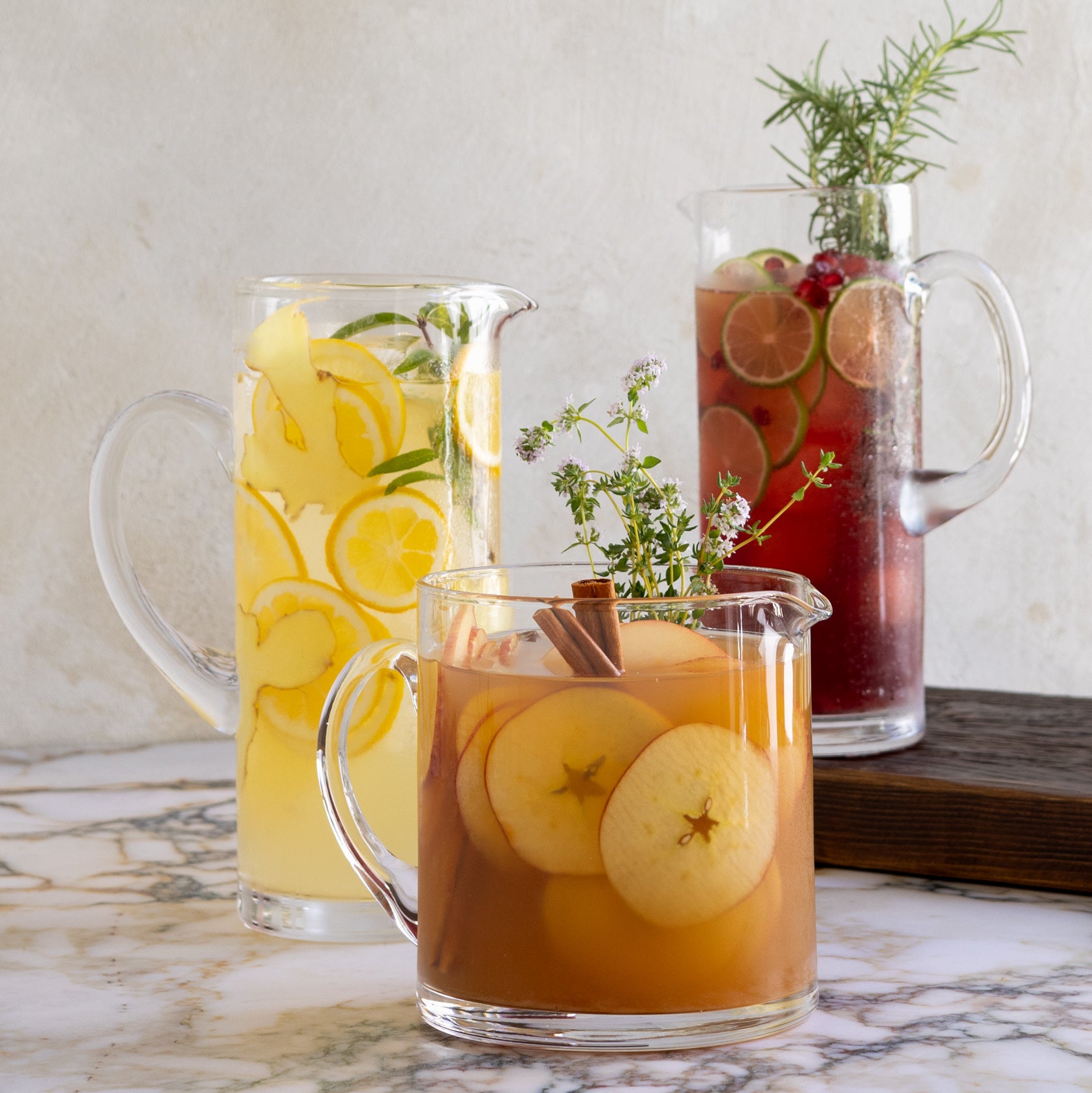 This Downtown Tall Glass Bar Pitcher has secured its spot as our daily favorite thanks to its versatile, sleek, and timeless design. Its modest size and straight-sided design add a touch of functional elegance to any occasion, making it ideal for weeknight dinners or intimate gatherings. Effortlessly serving water, iced tea, lemonade, or crafting cocktails for two, this pitcher seamlessly blends convenience with classic charm.